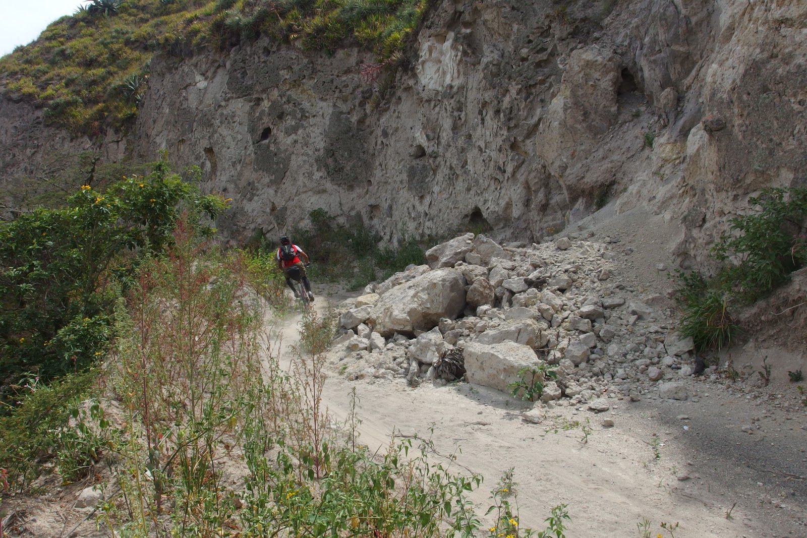 -- We start following irrigation channels at 4000 meters. They always provide fun riding.